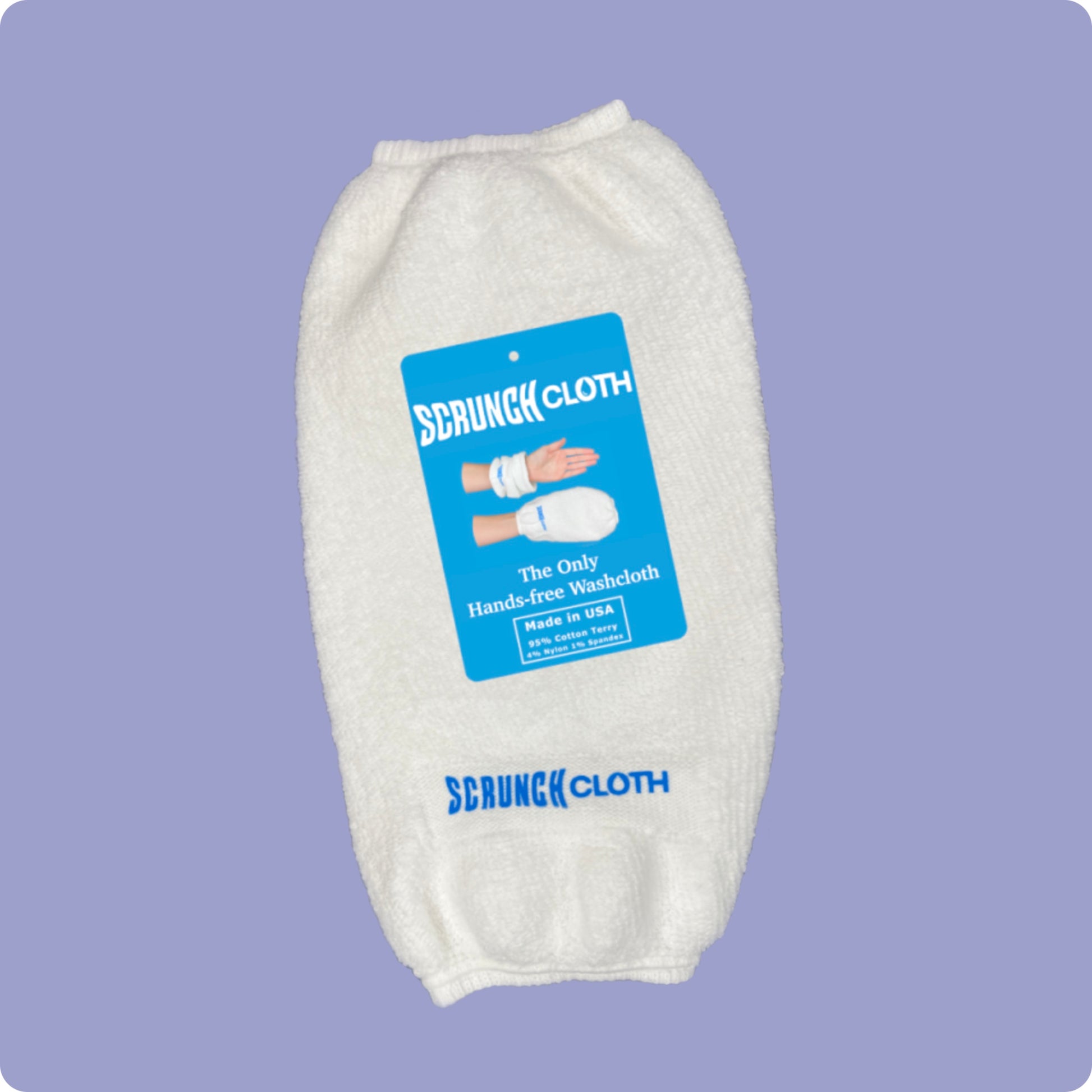 Scrunch Cloth is more than just a washcloth. This terry washcloth performs much better than a wash mitt or bath mitt because Scrunch Cloth hugs the wrist and can slide over the hand and back again effortlessly using only a single finger.